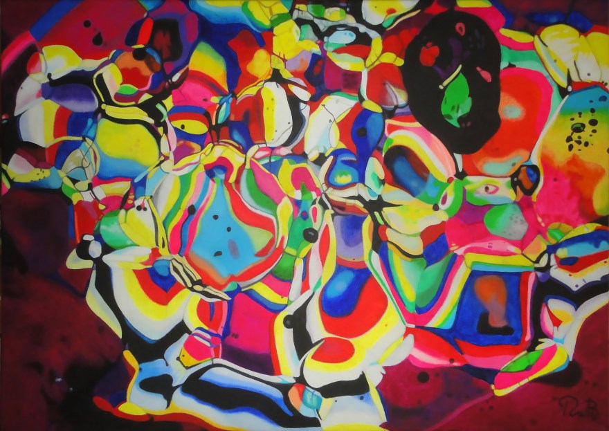 Regenbogenfalterflügel MikroskopaufnahmeRegenbogenfalterflügel Mikroskopaufnahme 2Mikroskopische Ansicht von Tequila, Acryl auf Leinwand, 2013, 58 cm x 58 cm,Mikroskopische Ansicht von dem Drink White Russian, Acryl auf Leinwand, 2013, 70 cm x 50 cmMikroskopische Ansicht von Rum, Acryl auf Leinwand, 2016, 70 x 50 cm„Entstehen & Vergehen“Farbtropfentanz im Wasser, Acryl auf Leinwand, 2016, 120 cm x 80 cm, verkauftAlles bricht auseinanderBlick in ein unbekanntes Universumunbekanntes Universum